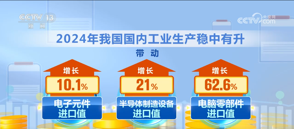 2024年,我国进口规模不竭扩大,不只满脚了国内出产需要,也丰硕了消费选择。客岁,我国国内工业出产稳中有升,带动电子元件、半导体系体例制设备、电脑零部件进口值别离增加10。1%、21%、62。6%;铁矿砂、天然气、煤等大商品进口量别离添加4。9%、9。9%、14。4%。同期,我国很多平易近生消费品的进口需求较为兴旺,生果、葡萄酒等进口值别离增加5。6%、8。6%、38。8%。